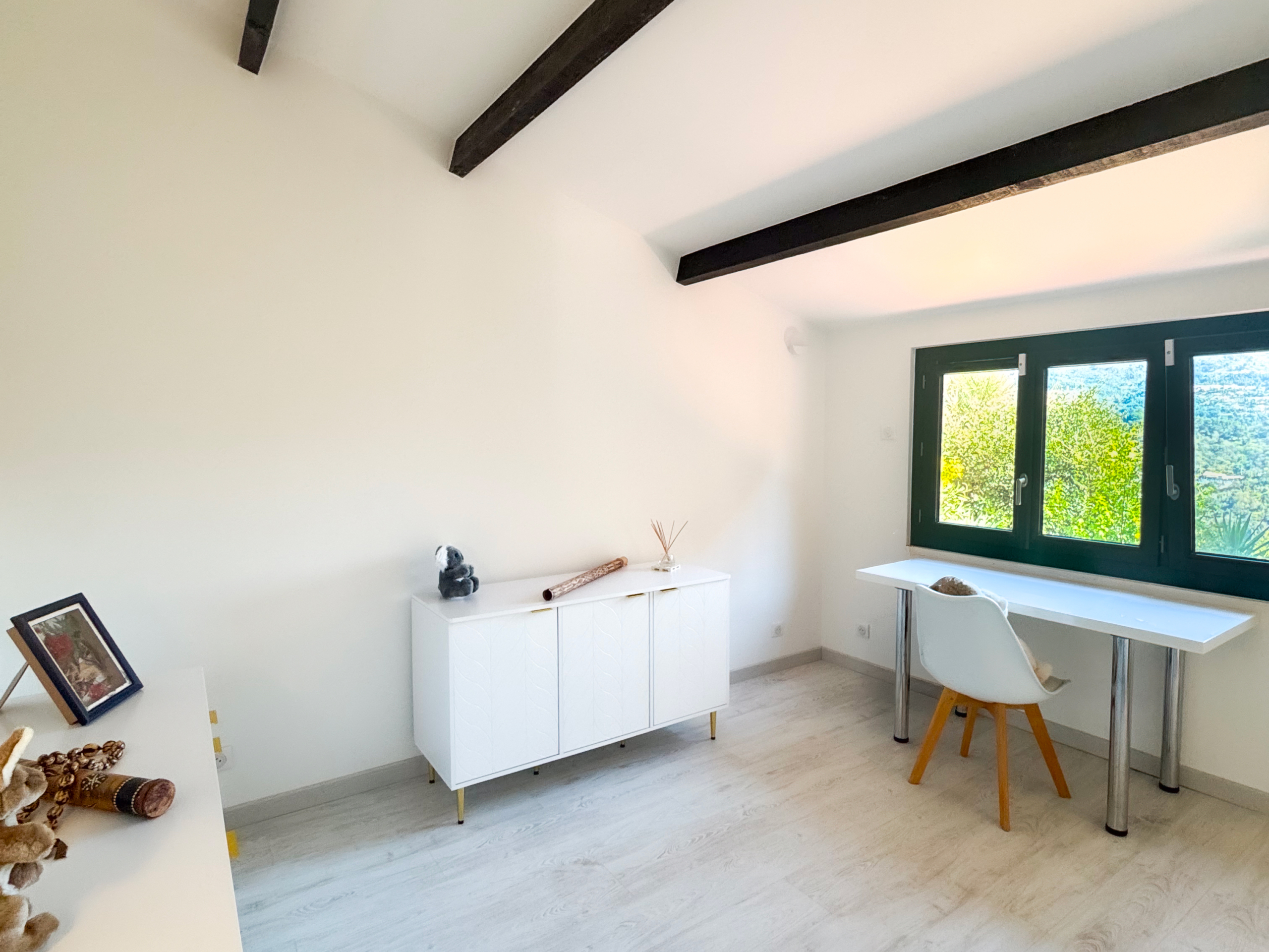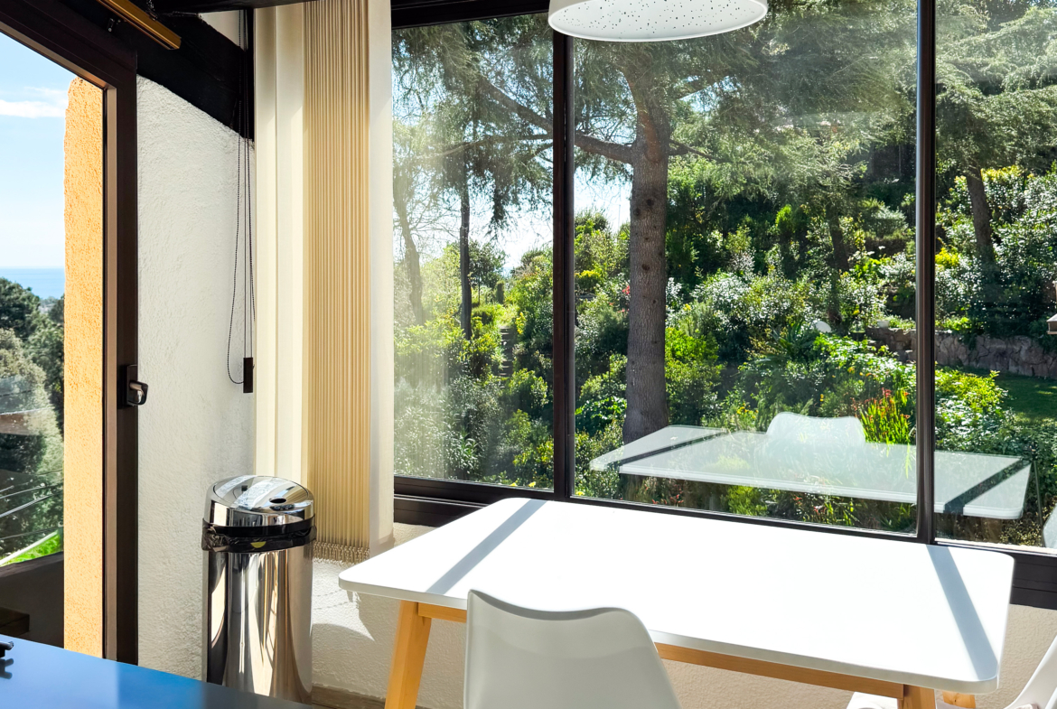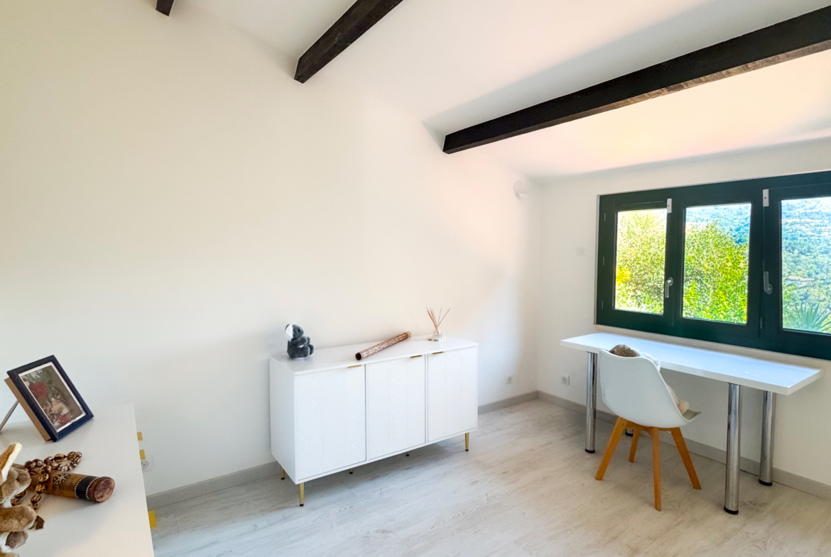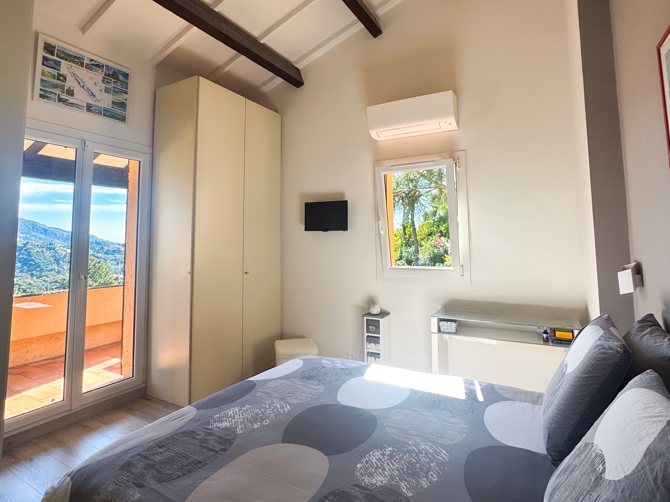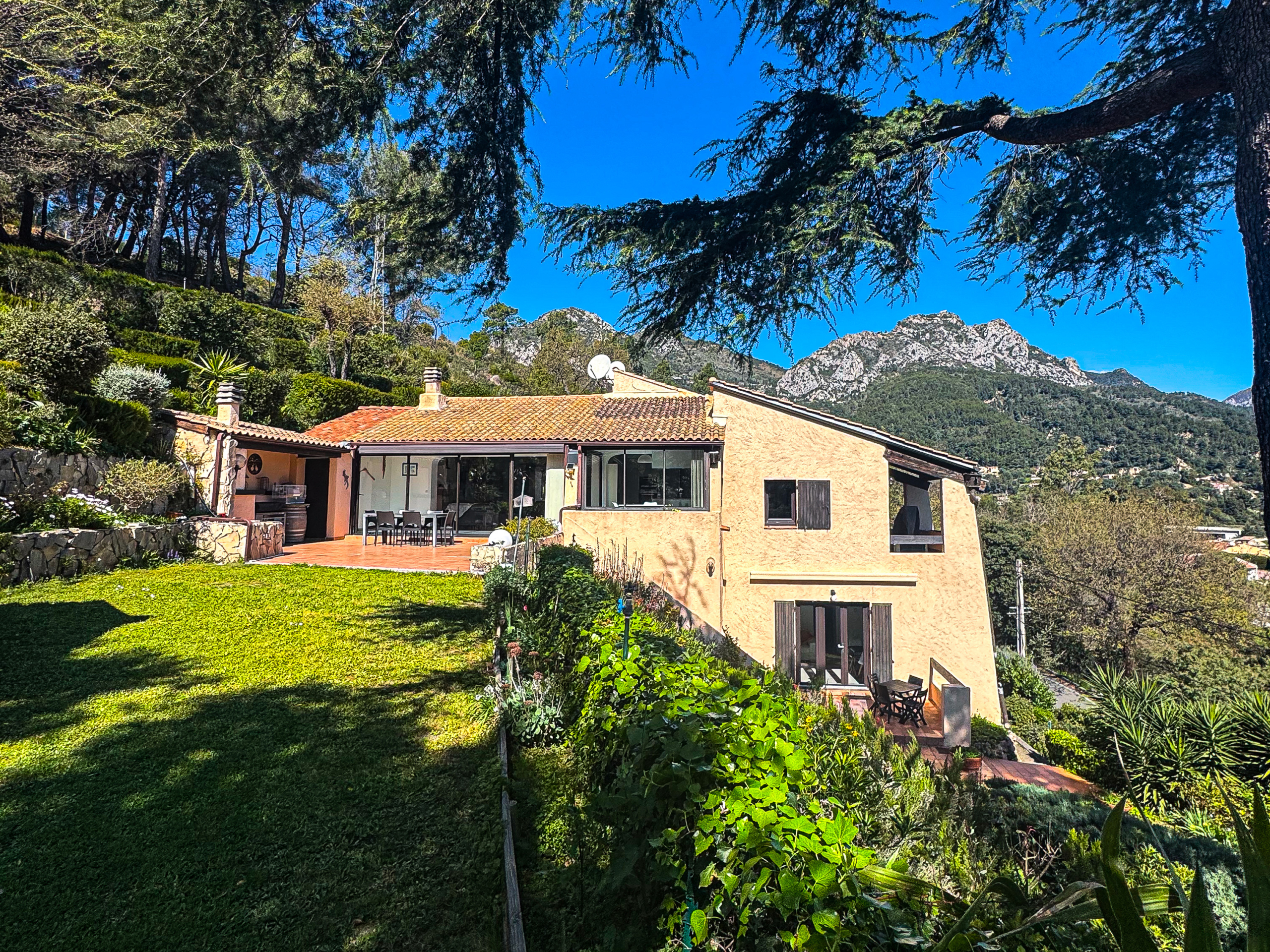 Located in a peaceful setting on the heights of Menton, this villa of over 170 sqm offers beautiful views of the sea and the mountains.